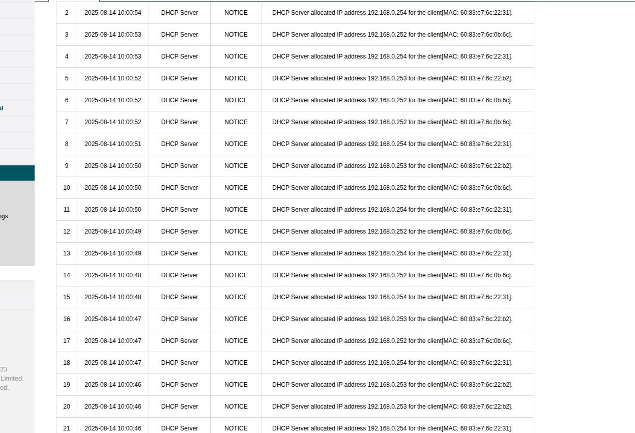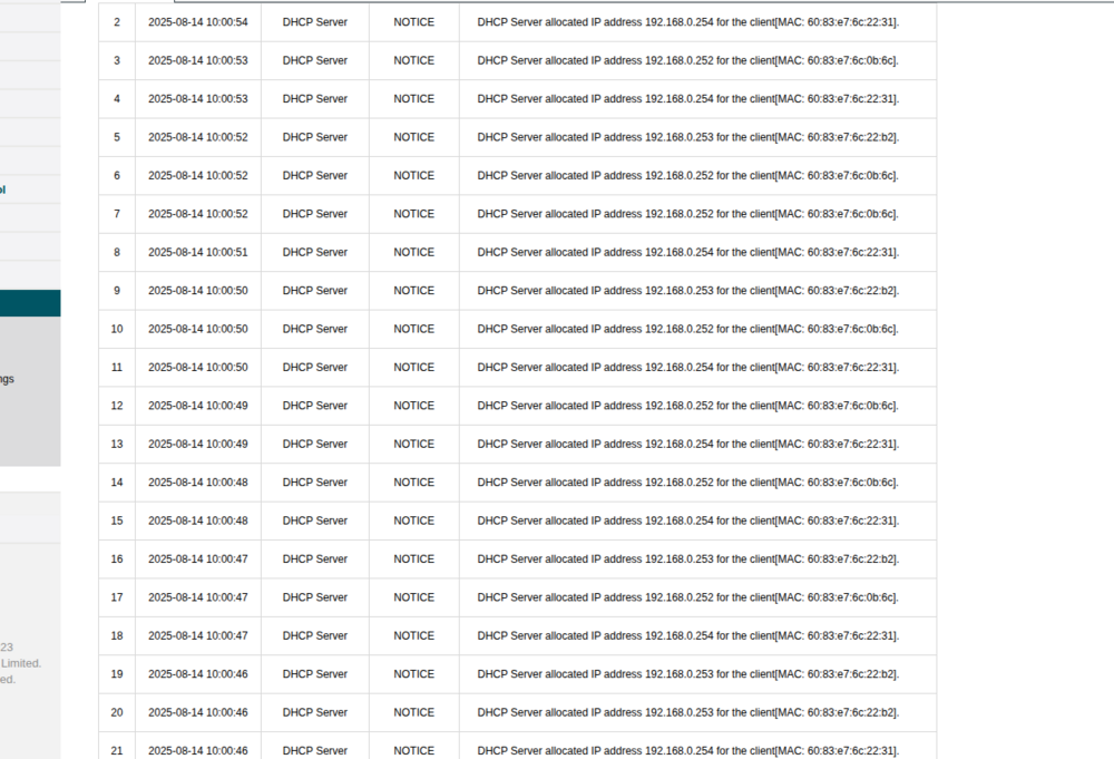 Em nossa rede, o roteador principal (que fica responsável pelo DHCP) está distribuindo de segundo em segundo, ip para 3 roteadores (os que configuramos como mesh) em nossa rede.