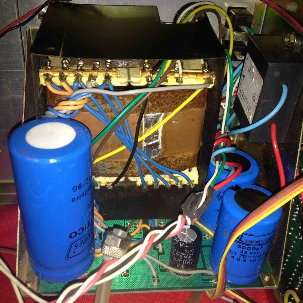 Olá faller boa noite... Fui as compras e acabei ganhando uma jóia...Visitei um ferro velho de um amigo, pra tentar comprar um outro transformador "menos potente".. Procura daqui, dali e achei um nobreak. procurando mais um pouquinho, queria encontrar a caixa que servira de estrutura da fonte, achei bem escondido uma caixa branca, quando fui ver de perto era um aparelho de monitoramento cardíaco e pressão. Fui ver o valor e meu amigo acabou não me cobrando nada...nesse aparelho tem até um mini compressor de ar. O transformador de não me engano "acho que é isso " é um chopper..entra 127v e sai 16v+16v.....9v+9v...e 6v+6v. Já veio até com o Lm 338K e 2N3055, pelas medições deu 10A o transformador. Acabei testando o aparelho e coloquei para funcionar, tanto ele quanto o nobreak, mas já desmontei ele para fazer a fonte. Olha algumas fotos aí...