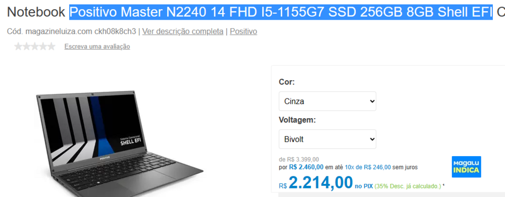 Prezado amigos. Podem me indicar um notebook até 2300 reais? É para uso diário. Não precisa de jogos. O melhor que encontrei foi esse LINK AQUI