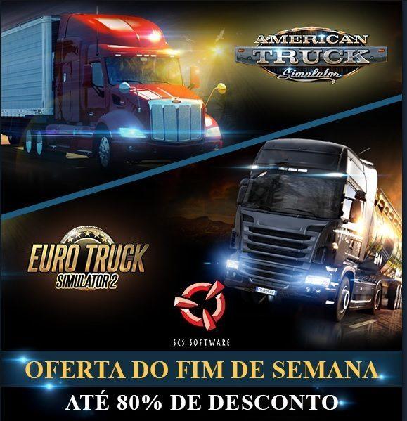 3. Todos os jogos da SCS incluindo Euro Truck Simulator 2, American Truck Simulator e suas DLC's estão em promoção na Steam http://store.steampowered.com/sale/scs/?snr=1_41_4__42 OBS: O jogo de caminhão parece ser chato a primeira vista " só leva e trás de carga", mais pode ser viciante curtir belas musicas em quanto viaja por belas paisagem da Europa e USA. Um jogo sem estresse, ideal para aqueles dias estressante em que você só que pegar um jogo e relaxar.