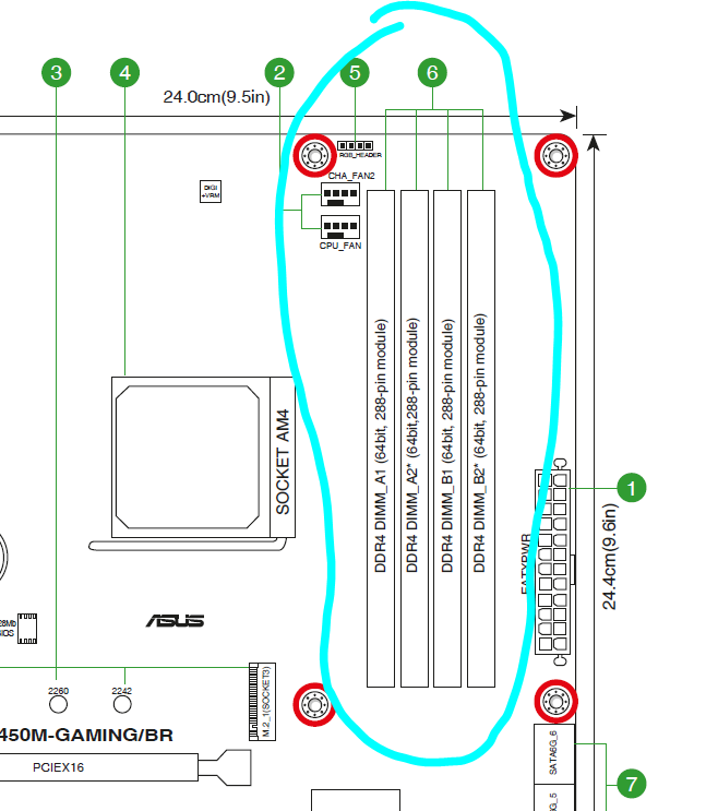 3. Comprei meu PC na Terabyte com 2 memórias Evo Potenza 8GB 3200 MHz e me enviaram instalado assim (Slots A2 e B2): Estou comprando mais um kit de 2 memórias 8GB 3200 MHz, no entanto, outro modelo, o Evo X II (não achei as mesmas que havia comprado). Ambas memórias são otimizadas para processadores Ryzen. A minha dúvida é qual o layout de instalação. Considerando que elas podem ter algo diferente, eu apenas completo os slots vazios? Ou coloco as memórias Evo Potenza nos slots A1 e A2 e as memórias Evo X II nos slots B1 e B2? Segue abaixo informação do manual da placa, mas não é claro para mim: