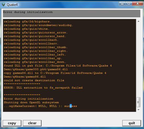 1. Boa tarde a todos , instalei o demo do Quake 4 no meu note com Vista , entretanto , após a instalação e ao tentar iniciar o game , aparece essa mensagem de erro em anexo , alguém sabe qual seria a solução ? , obrigado , aguardo retorno.