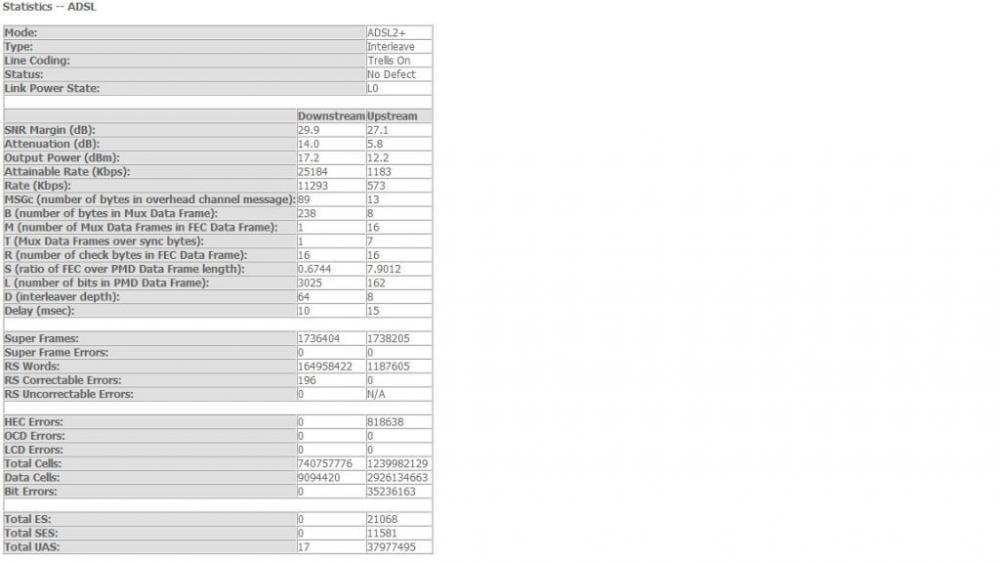 14. Seus valores estão muito bons. Recentemente tomei conhecimento que há um parâmetro na maioria dos modens, que é o ATTAINABLE RATE Kbs, o qual fornece a velocidade máxima da sua linha. Veja se você consegue achá-lo, pois esse valor informa em tempo real qual a maior taxa de downstream e upstream que sua conexão suporta. Uso o modem DSL 500B GII e nele consigo visualizar esse valor - vide figura do tópico anterior. Me parece que esse parâmetro recebe um outro nome no seu modem - "Banda (up/down) [Kbps/Kbps]". Se estiver correto, a maior velocidade suportada seria 4M.