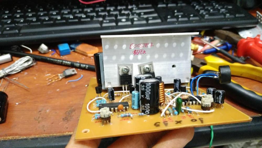 O meu montei na base da aranha mesmo e funcionou, mas tava tão feio e confuso que resolvi fazer uma pci. Nas fotos abaixo da pra ver a bagunça rsrs. No meu caso são dois inversores, um de 13,8v para 19v e outro de 18v para 13,8v. Tive mais problemas em abaixar a tensão do que elevar, justamente por conta do acionamento do mosfet! Demorei a entender que esses carinhas são bem diferente dos transistores no que tange ao acionamento. Sugiro que baseie-se no circuito que vou anexar, que é o do datasheet do fabricante do TL. Qual é a tensão que está colocando na entrada do transformador? Uma Sugestão também seria usar um potenciômetro para ajustar a tensão de saída. Quando estava começando a fazer aqui, estava calculando com base em resistores. Mas a potencia disponível variava conforme a tensão que eu ajustava (problemas de acionamento do mosfet, núcleo inadequado, quantidade de espiras inadequadas). Quando baixava a tensão de saída, o circuito funcionava melhor. Depois de funcionando corretamente, você pode voltar a calcular os resistores e colocar no lugar novamente.