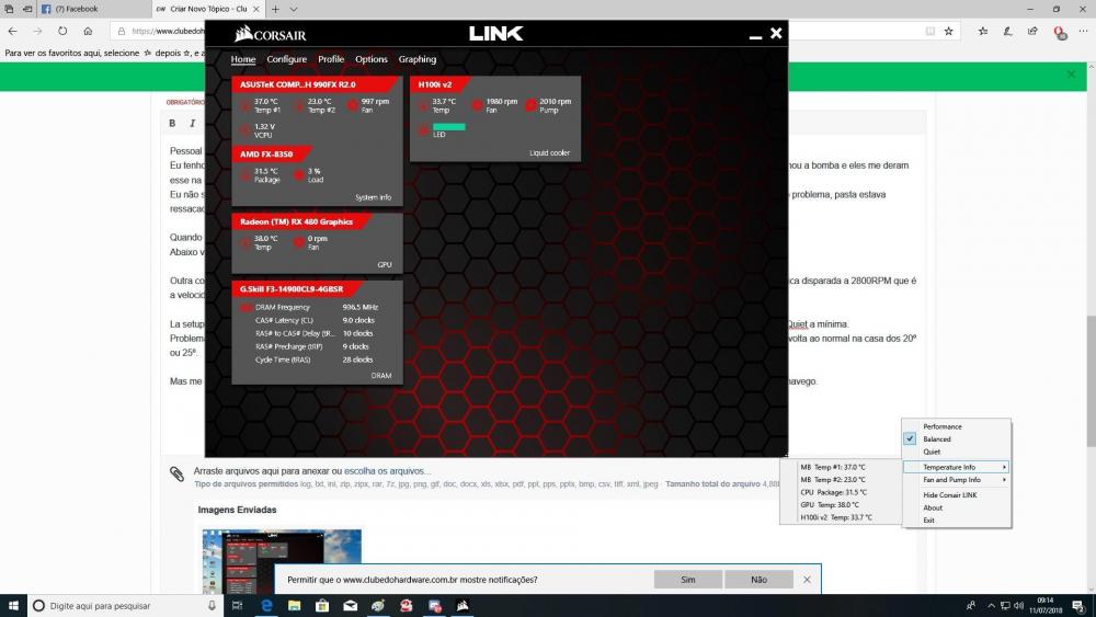 Esse é novo, começou fazer isso depois de quase 8 meses de uso. Modelo anterior que eu tinha era H100i normal e queimou bomba temperatura tava fazendo algo parecido. Mas esse ainda ta segurando temperatura no modo performance. O cooler box da AMD para FX 8350 é terrível de ruim. Vou providenciar um hoje mesmo, ta me cheirando problema na bomba water cooler. Eles demora bastante RMA da corsair, depois dessa experiência com water cooler, vou largar mão disso. Já que eu não faço overclock para mim não tem utilidade isso mesmo. -