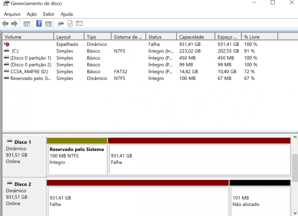 @Henrique - RJ Rapaz. Agora lascou tudo. A minha build era a ultima (1803). Daí fui regredindo baixando as iso no site da Microsoft. Tentei a 1709, instalei os drivers a o vídeo apagou e não voltou mais. Daí tentei a 1703. Rodou! Tá funcionando. Porém agora lascou com o RAID. Não tá mostrando os discos. Está aparecendo essa falha aí abaixo. Na verdade não é nem o HD. É a partição. Fiz um checkup nos HDs e estão OK, então o problema é software. Pior que todos as minhas coisas pessoais estão nesse RAID.