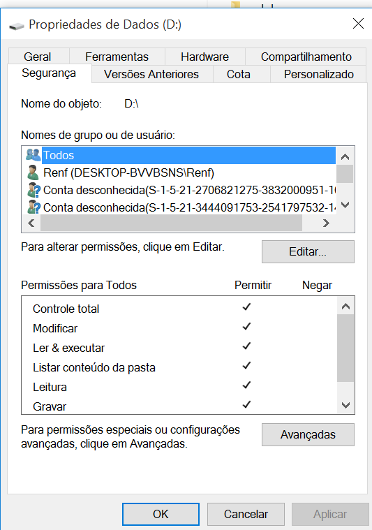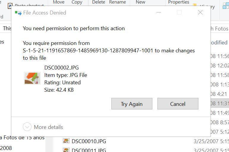 Gente, minha questão é a seguinte. Tenho um HD de 500GB com muitas coisas pessoais. Então, anos atrás coloquei senha no HD via Windows, no caso Windows 7 se não me engano. Só que o outro HD em que estava o SO queimou, e também troquei o PC inteiro pois minha mobo foi pro saco. Enfim, hoje quando tento acessar ele, ele não me deixa acessar nada, só navegar nas pastas. Não copio, não colo, não apago e não abro os arquivos. Hoje utilizo o Windows 10. O que pode ser feito? Anexo imagens de quando tento acessar o HD ou qualquer pasta e outra de quando tento abrir um arquivo qualquer (esse é o mais estranho, diz que não existe o arquivo). No Windows 7 dizia que eu não tinha permissão. No 10 diz que não existe. Alguém pode me ajudar?