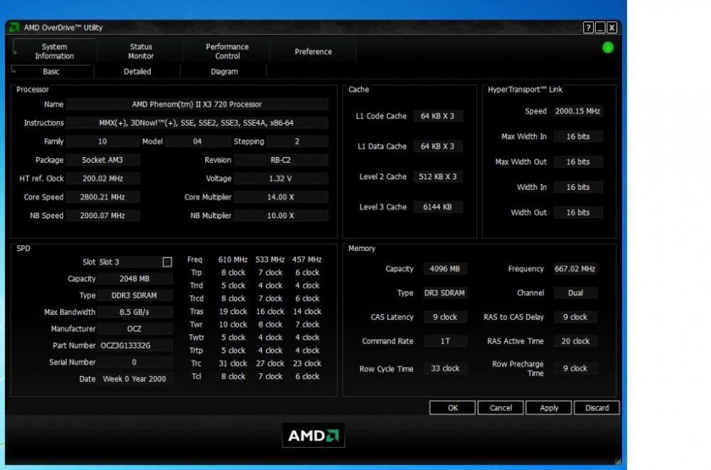 RAMON - o HT 2.0 liberado até o momento nos Phenon II chega até 8 GB/s ou seja corresponde à velocidade de 533MHz na memória. Quando se utiliza uma memória de 667MHz (10,6GB/s) este excedente não é aproveitado pelo processador. O único modo de aproveitar esta banda é em OC. Contudo não sei se é possível aumentar 25% do clock básico do processador. Se alguém conseguir fazer isto na A790GMX-AD3, poste as configurações que eu irei tentar também. PS meu computador é Windows Seven 32 Bits / Placa mãe: A790GMX-AD3 / Proc: Phenon II X3 720 / Memória: 2x2Gb DDR3 1333Mhz OCZ Gold Series / HD: Seagate 7200.11 1.5TB Sata II / Monitor: LG 2353 FullHD 2 ms