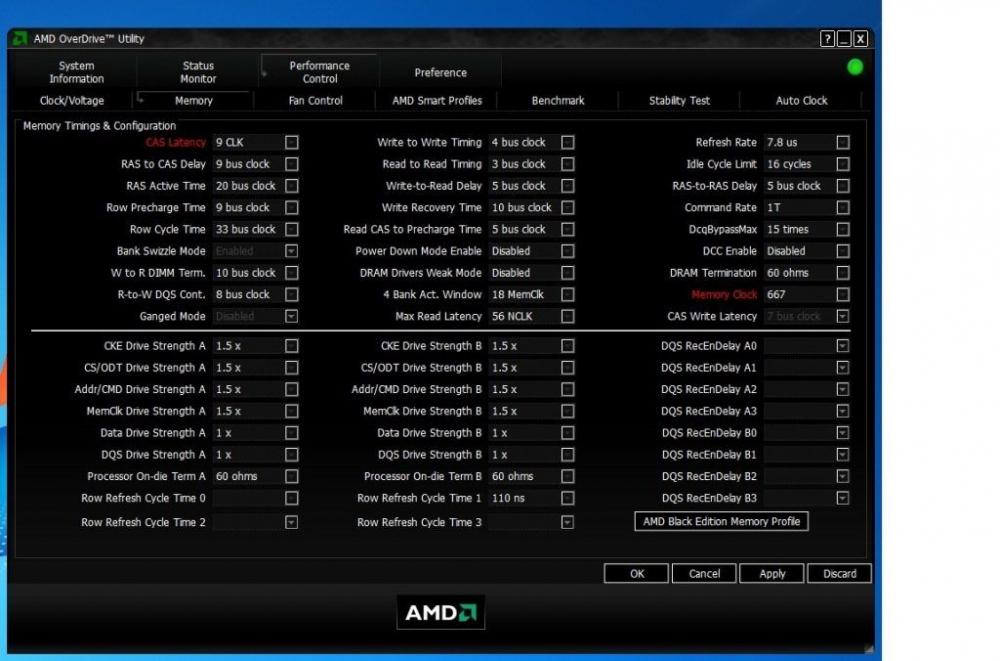 Galera - muito obrigado pelas explicações. Agora consegui captar a mensagem. Contudo vou precisa de apoio, pois no meu a banda de memória está em 8,5GB/s. O que eu não estou entendendo é pois a configuração da Memória está em 667MHz (vejam fotos do AMD Overdrive). Eu defini na BIOS a frequencia da memória e deixei os outros parâmetros em AUTO. Será que terei que defini-los manualmente ou seria problema de compatibilidade da Memórias com a placa Mãe (as memórias utilizadas OCZ 2GB 1333MHz gold series, não está contemplada na lista de produtos qualificados da ECS A790GMX-AD3)? [ATTACH]72655[/ATTACH] [ATTACH]72656[/ATTACH]