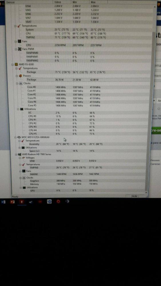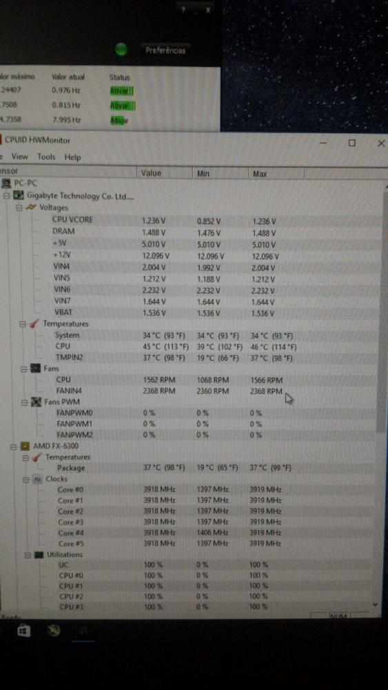 Boa noite a todos! Um amigo meu está com problema de superaquecimento no seu processador FX-6300, é algo aleatório, a vezes o PC liga e fica normal, as vezes no próprio boot já bate 80ºC. Estamos suspeitando que o problema é na bomba do water cooler, um Cooler master seidon 120v, que pode estar apresentando defeito. Como pode ser visto nas imagens abaixo, quando o problema ocorre, não aparece o FANN4. Seria mesmo a bomba do water cooler com problema? o conector de 3 pinos da bomba? Outros problemas que já ocorreram, por cerca de 1 ano e meio ele utilizou a placa-mãe asus m5a78l-m lx/br, e ele me disse que o PC estava reiniciando sozinho por diversas vezes, sugeri que trocasse a placa-mãe, pela incompatibilidade dos FX's com o chipset 760g, com a troca e problema acabou, mas o do superaquecimento continua. A configuração atual dele é: Processador: FX- 6300 placa-mãe: Gigabyte GA-970A-D3P Water Cooler: Cooler Master Seidon 120v Memoria Ram 12 gb ddr 3 1333 Mhz HD 1 tb Fonte Corsair 750w Placa de vídeo GTX 970 Se alguém puder ajudar fico agradecido!! Até mais!