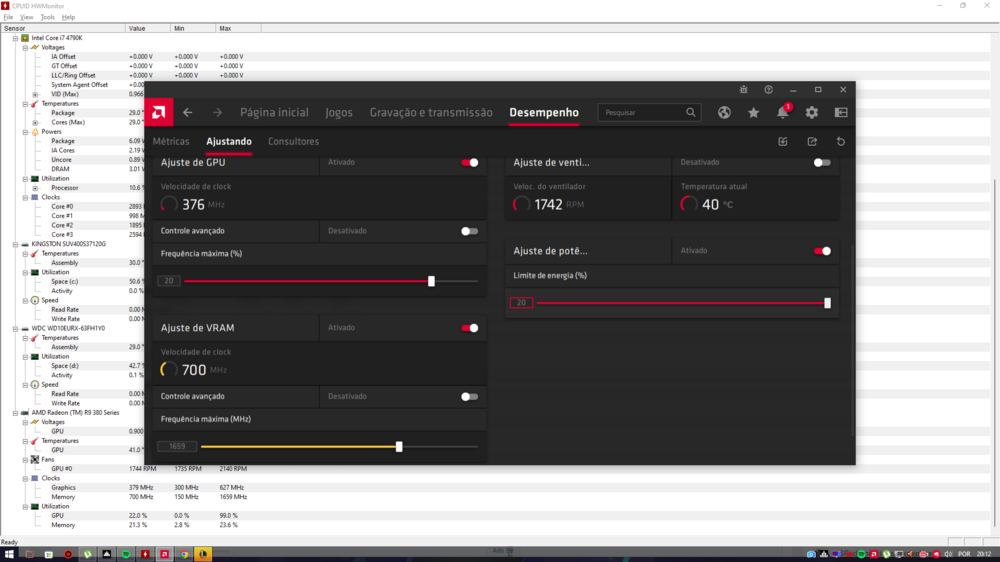 Olá amigos. Meu PC é um i7-4790k, com 12g de DDR3 e minha VGA é uma Radeon R9 3800 e to com o seguinte problema. Eu sempre joguei League of Legends travado em 80 fps e sempre deu lag nas team fights, mas no geral rodava bem e dropava pouco, mas ultimamente está gargalando muito. No "Task Manager" diz que o uso do CPU, da VGA, do SSD e da Memória nunca chega nos 50%, mas agora está travando muito, tem jogo que eu saindo da base já aparece 76, 71 e nas lutas cai pra 50, 55 fps segundo o indicador do jogo, mas parece bem mais porque não consigo ver mais nada. Baixei o MSI Kombuster e fazendo o teste fica em 15 fps e esquenta muito a placa. Quando o ping tá alto indica que tá caindo o FPS tb, mas não sei se há alguma relação. Gostaria de saber com os senhores se com essa configuração era pra estar desse jeito? Se eu deixo o FPS livre no lol ele abre em 270, mas cai rápido pra 140 145, só que ocorre o mesmo gargalo em momentos do jogo. Não sei se pode ser problema com fonte, se as peças estão ultrapassadas e preciso trocar ou se é algum problema de Software. Os drivers todos estão atualizados. Quem puder me dar uma ajuda seria excelente, pois não sei mais o que fazer.