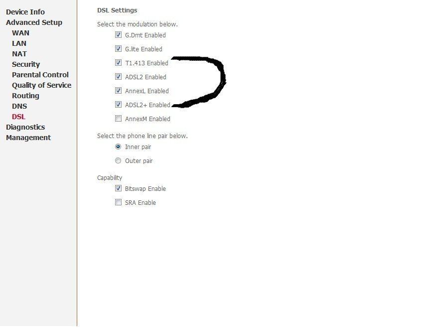 13. beleza, valeu. Em relação as opções ativadas por padrão no modem em advanced setup/dsl tem que ficar as 6 marcadas mesmo ne? Meu colega de trabalho me disse que o técnico da Oi que foi na casa dele falou que bastava o G.dmt e G.lite marcados que funcionaria da mesma forma e com o sinal melhor, elevando o SNR. Bom, eu não vi, ele me disse. Tanto é que fiz aqui e nem se quer manteve estável. Ficava conectandando e caindo constantemente.
