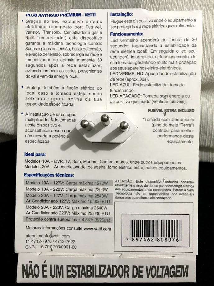 Pessoal entendedores, Anos atrás após ler um tópico do nosso ilustrissimo @faller, abandonei todos os estabilizadores de energia e sou pregador do novo evangelho. Atualmente eu uso um DPS "Clamper Energia 2" no PC e nos acessórios da mesma tomada, moro em prédio grande e aparentemente ele é aterrado pois o fio terra está presente nas tomadas (se está funcionando ou não, não sei como testar). Porém sei que esse clamper adiciona a proteção usando apenas 3 varistores (se é suficiente ou não, não sou capaz de opinar). Gostaria de comprar um outro protetor de energia para a tomada que atende a TV e num belo passeio pela Leroy encontrei sem querer o VETTI que utiliza em sua proteção: fusivel, varistores também, centelhador a gás, transorb e relê temporizador. http://vetti.com.br/produto/protetor-contra-raio/. Alguém já o utilizou e sabe se é bom, ou se é só fachada? Sei que eu pego muita interferencia de rádio nos meus equipamentos de áudio no ap, existe algum jeito de parar com isso, também? Obrigado!