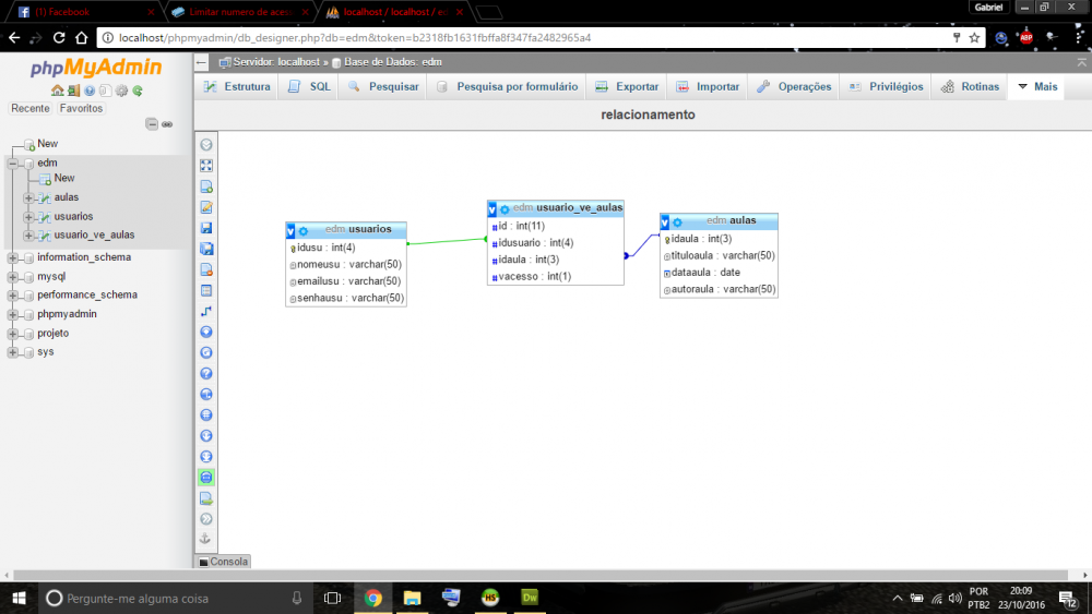 @DiF Segue imagem dos erros, código e relacionamentos: edm.php <?php include "Connections/conexao.php"; $confereLimite = mysqli_query($conecta, "SELECT usuario_ve_aulas.vacesso, usuarios.nomeusu, aulas.tituloaula, aulas.dataaulaaula, aulas.autoraula, FROM usuario_ve_aulas INNER JOIN usuarios ON usuarios.idusu = usuario_ve_aulas.idusuario INNER JOIN aulas ON aulas.idaula = usuario_ve_aulas.idaula where idusu = 11"); //Põe os dados em um objeto $usuario = mysqli_fetch_object($confereLimite); $qtdAcessos = $usuario->usuario_ve_aulas.vacesso; if($qtdAcessos < 5): //Incrementa a quantidade. é a mesma coisa que $qtdAcessos = $qtdAcessos + 1 $qtdAcessos++; $atualiza = mysqli_query($conecta,"UPDATE usuario_ve_aulas SET vacesso = $qtdAcessos where idusu = 11"); //Confere se o SQL de atualização foi realizado if($atualiza): echo "É a sua $qtdAcessos visita"; endif; else: echo "Você estourou o limite de visitas"; endif; ?> -
