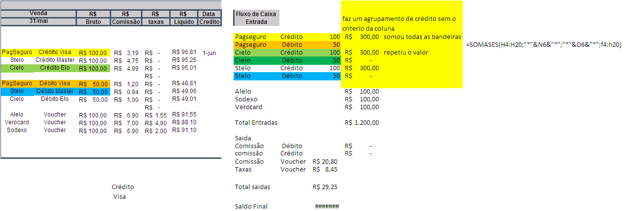 Excel Somar total por tipo de credito