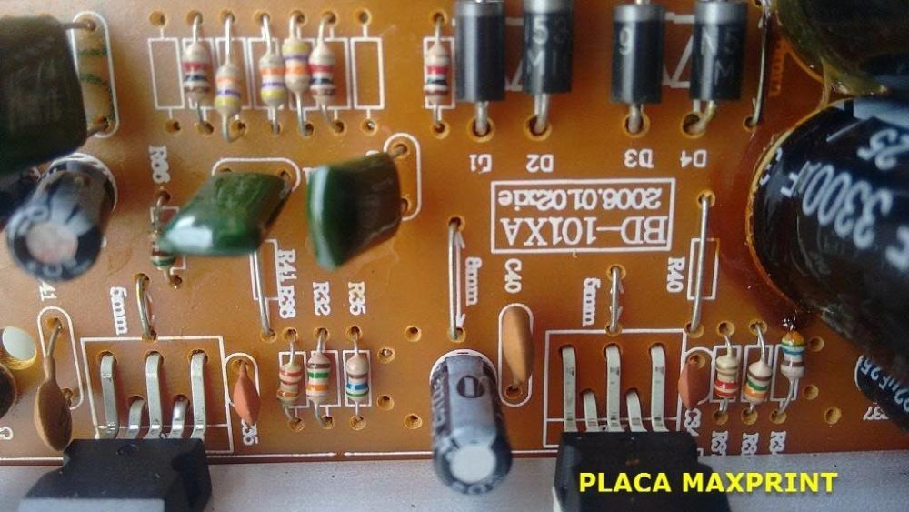 @Bcpetronzio consegui reparar a Maxprint. Realmente era o outro capacitor que não havia trocado por "pão durismo" hehehe. O bicho tava até meio torrado embaixo rsrsrs. Já a Bomber, troquei os 2 capacitores da fonte 2200MF 25V, mas só diminuiu o ruído e tem mais coisa pra trocar. Contudo fiquei satisfeito pela Maxprint que tem um som melhor e acho que vou esquecer a Bomber rsrsrss Muito obrigado @Bcpetronzio e @Ricardo S Ferreira Abs -