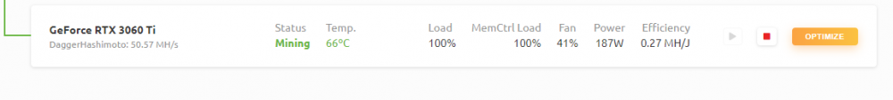 Aproveitando o topico, por curiosidade fui testar o 3060ti, qual a opinião de vocês? Segue detalhes abaixo. - Temperatura média: 66°C (menor do que quando eu jogo metro exodus) - ganho em 2 horas: ~ 700 satoshi 50,57MH/s - consumo de 187w - vel da fan: 40% Energia não é problema (uso painel solar). Honestamente, como já foi falado, acho ser desperdicio de tempo e hardware. Ou estou desperdiçando um ovo de "ouro"?