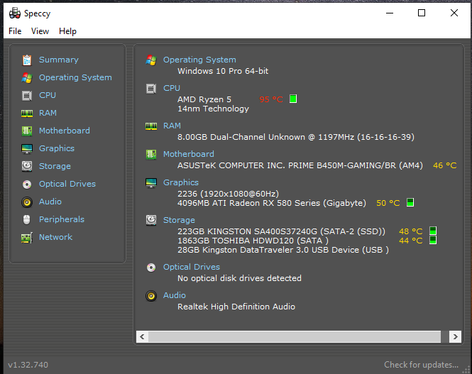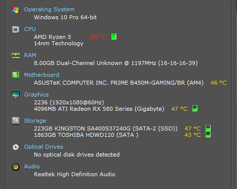 Specs do PC, imagem que eu tirei ontem: (a temperatura da CPU é normal, o programa é que costuma ler a temperatura de maneira errada)