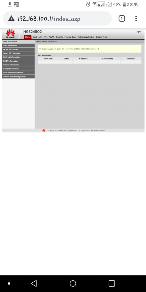 Olá, gostaria da ajuda de vocês amigos, Tenho o modem HG8245Q2, minha internet e pela Claro/Net. Não sei como o modem não aceita mais essa senha para acessar o painel de admin, assim só consigo acessar as configurações básica do usuário root. Senha anterior: user: telecomadmin senha: admintelecom Será que a própria operadora que fez alteração? Só eu que mexo nele em casa.