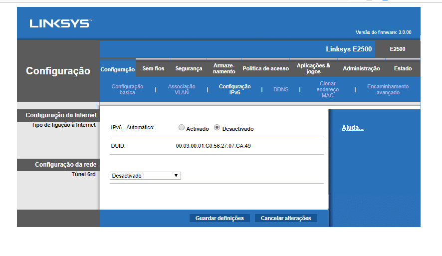 Acabei de testar! No cabo é a mesma coisa. Olha aí a página de configurações do meu roteador. Acho que não resta muita dúvida que a configuração do IPv6 é ou ao menos deveria ser por aí né ? Desativei e continua a mesma coisa. Até fui em configurações do adaptador de rede do windows e desativei o IPv6 manualmente!!! Não entendi a pergunta muito bem. Eu estava no google chrome e ele informou que não conseguiu conectar ao site pois estava demorando muito para responder. Selecionei apenas a opção solução de problemas da internet e consegui chegar a essa tela. adicionado 13 minutos depois Fiz novos testes. Rodei um comando tracert e olha o que deu: Eu posso está errado mas este endereço começando com 172 é o do meu provedor correto ? Sendo assim isso quer dizer que o problema é com eles ? Testei também a consulta de DNS e tudo parece ter funcionando corretamente. Peço até que rode o seguinte comando e veja se o endereço IP bate com o seu! -