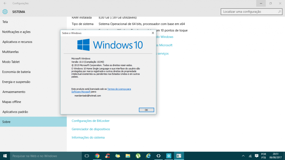 1. windows versão 10.0 compilação 10240