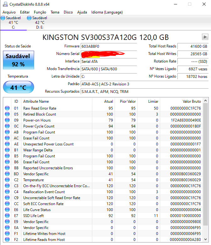 abri o HD e o SSD com o crystaldisk e esses foram os resultados (irei atualizar o firmware durante a semana).