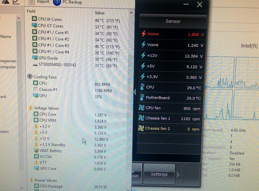 Fala, galera. Beleza? Recentemente comprei um i7 4790K e chegou hoje. Ao instalar ele é iniciar minha máquina, o programa da asus de monitoramento deu um aviso de VCore de 1.8V Fiquei assustado pois eu acredito que seja uma tensão alta. Quando abri o Aida 64, vi que o VCore estava em 1.2V (aceitável) mas o CPU VRM estava em 1.8V. Antes de trocar de setup, eu tinha um i5 3470 e uma placa-mãe asus P8Z77-M, por isso usava esse monitor da asus mesmo. Minha dúvida é: Essa tensão está realmente alta, ou é aceitável pra um i7 4790k? Eu não pretendo fazer OC tão cedo, pra mim os 4GHz base e os 4.4Ghz de boost estão ótimos. Se for alto, como posso fazer pra detectar o que está aumentando tanto? Não fiquei com o PC ligado muito tempo com medo de estragar algo... Meu setup atual é: CPU: i7 4790K MoBo: Asus Z97M-plus Fonte: Aerocool strike X 500W Abaixo tem uma foto que consegui tirar antes de desligar o PC. Agradeço toda a ajuda! Valeu!!