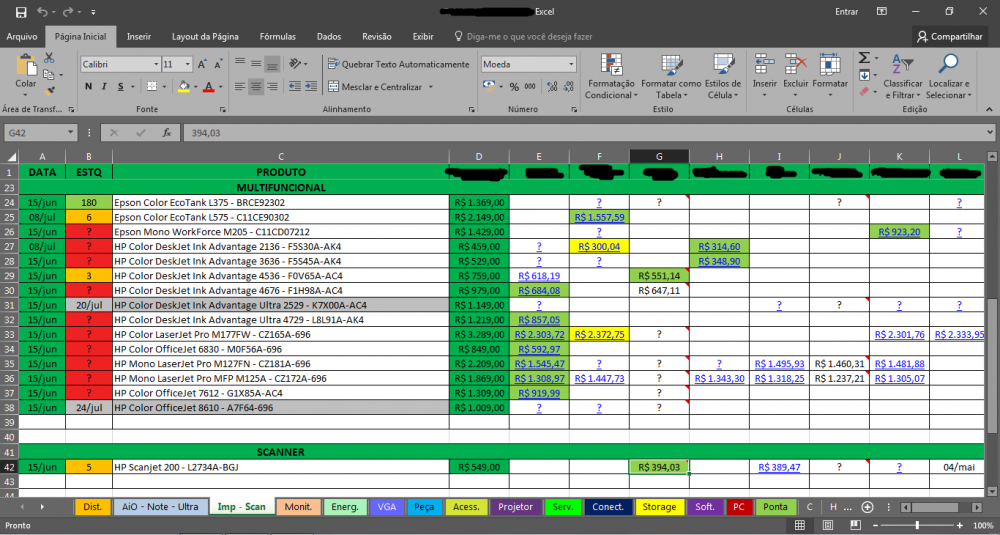 Meu trabalho é basicamente checar preço de produtos. Pra isso eu tenho uma tabela no excel com o nome do produto e seu preço em cada distribuidor. Cada preço tem o link do produto em seu respectivo distribuidor.