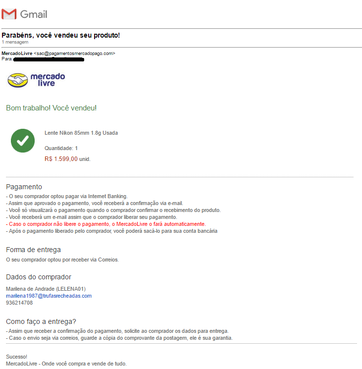 (O resto de e-mail são os dados do comprador, então não vou mostrar)