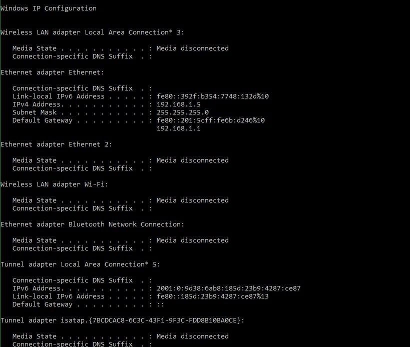 quando eu entro com cmd/ipconfig, é isso que aparece: