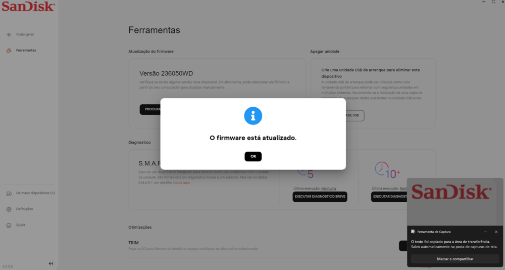 @GabrielLVBom dia Gabriel, tudo bem ?! eu utilizo esse SSD NVMe Marca: SANDISK Modelo: SDSSDA3N-250G-G26 Capacidade: 250GB Fator de forma: M.2 2280 Conector: M.2 Compatibilidade: Windows 10 ou posterior Desempenho de leitura sequencial: 2.400MB/s Gravação: 1,500MB/s Interface: PCIe Geração 3 Itens agrupados: SanDisk SSD Plus M.2 NVMe PCIe Gen 3.0 SSD interno Dimensões: 80,01 mm x 22 mm x 2,39 mm Resistência: 40 TBW baixei o app da SanDisk nele diz que esta atualizado.. minha duvida é, é melhor eu clonar o o windows que esta no SSD NVMe para o meu SSD sata normal para testa ou melhor eu clona meu windows do SSD sata (que estou utilizando e não da tela azul) para o SSD NVMe ? -