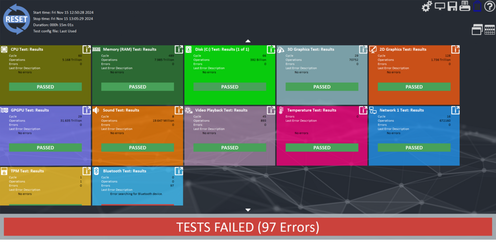 @GabrielLVFiz os 3 teste e aparentemente não deu tudo ok.. não sei se isso é bom ou ruim, pelo falo de não da para achar o problema.. Toolbox - Placa-mãe - Aprovado - 2024-11-16.zip Toolbox - Teste Completo do Sistema - Aprovado - 2024-11-16.zip Toolbox - Teste de estresse do sistema - Aprovado - 2024-11-16.zip -