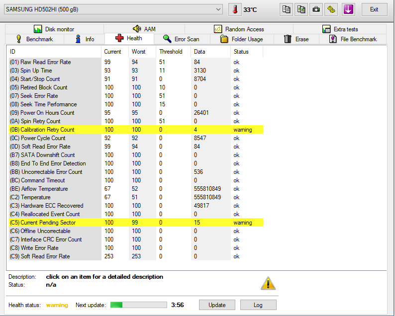 Primeiramente vou contar como tudo aconteceu, logo no começo do ano comprei placa-mãe nova, processador novo, 8gb de ram e um sdd e montei meu pc com uma fonte que usava no antigo, placa de video e um hd de 500gb, config completa a baixo. Processador Intel Core i3-8100 Coffee Lake 8a Geração Placa de vídeo GeForce GT640 2GB Placa-mãe ASUS TUF H310M-PLUS GAMING/BR Memória HyperX FURY 8GB 2400Mhz SSDs SSD Kingston 2.5´ 120GB Fonte EVGA 430W 80 PLUS WHITE Até ai tudo beleza funcionando legal até se passar 2 meses apenas jogar um ar no pc pois nao estava quase nada sujo, tenho um aspirador bom aqui que assopra bem. Logo apos isso estava funcionando numa boa, até que um dia desligou do nada, passou uns 3 dias e voltou acontecer, nesse tempo joguei cs, apex, gta v e tudo mais numa boa.. Mas hj fui jogar gta v e desligou uma vez, ai liguei e ele tornou a desligar com uns 10min jogando de novo, dai liguei de novo e ele rapidamente desligou.. Nisso abri ele, tirei a fonte e passei um ar nela também e saiu até que bastante sujeira, tirei a placa de video e fiz a mesma coisa separado e mesmo assim desligou. Logo apos abri novamente e vi que o cooler estava um pouco solto e apertei bem, com isso achei que estava solucionado, joguei gta v por umas 2h, e no meio da jogatina eu pausava e abria um programa pra testar a temperatura e via que não passava de 51°, e achei ter resolvido o problema mas agora umas 6h depois de tudo isso, estava jogando um jogo bem fraco, nada comparado a gta e o pc desligou novamente... alguem sabe o que possa ser??? baixei esse programa pra ver como tava o HD e deu isso, e isso pode ser o problema do desligamento ???