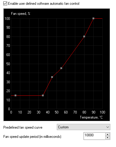 6. @Angern Aonde exatamente eu posso ver isso ? @gustavodbg Ontem acabei achando o MSI Afterburner, e fiz minha própria curva de rotação, e ficou assim: Com essa config, a temperatura caiu para 45 graus no máximo. Será que tá bom assim? Eu quero poupar a VGA obviamente, mas também não quero perder vida útil dos fans.