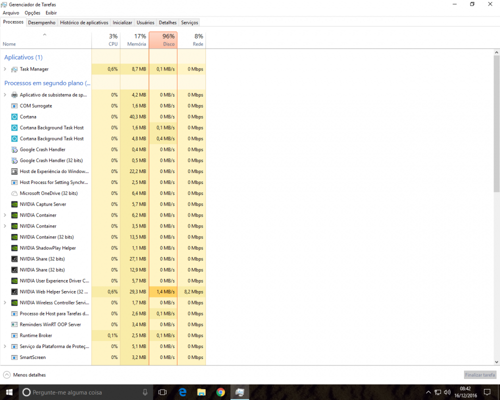 17. Qualquer coisa que abro chega a 100% do uso, jogo principalmente.