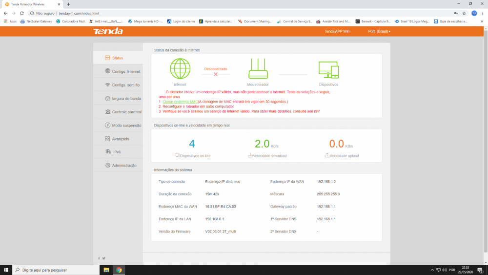 primeiro quero dar minha opinião referente a este Roteador, ele é PÉSSIMO um dos piores que ja tive. agora vou falar do meu problema. minha internet é 300mb fibra optica. o roteador fica alternando status de desconectado mesmo estando conectado e com internet (vide anexo), acredito eu que isso esta prejudicando na qualidade da internet. fiz vários teste pra saber se era esse infeliz ou era o provedor de internet. 1º teste - Modem + Roteador + PC (cabeado) *sites de medir a velocidade - a velocidade fica dando quedas absurdas de menos 1mb * lives - as lives fica oscilando 1080p pra 144p e se colocar fixo 1080 ou 720 fica travando toda hora *jogos online nem pensar o lag é absurdo 2º teste - modem + PC (cabeado) *sites de medir a velocidade - a velocidade fica sempre acima dos 250mb sem queda * lives - as lives fica em 1080 fixo nao apresentou nenhuma travadinha se quer *jogos online sem lag alguem com experiencia com este roteador (joça) que possa me ajudar , ou pelo menos me desencanar dele e ir atras de outro pra nao ter mais dor de cabeça?