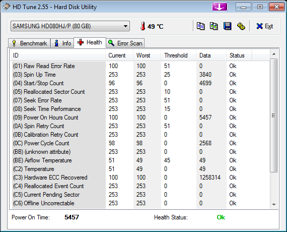 Problema de temperatura eu descartei , pois usei o MSI em tempo real com o jogo aberto e processador não passava dos 60 , integridade também n é pois chequei os arquivos varias vezes e nada está corrompido , suspeito que seja o hd, vou deixar uma print aqui da aba health do HD(Obs: ja rodei o HDD regenerator nesse HD e nada de Bad Block) -