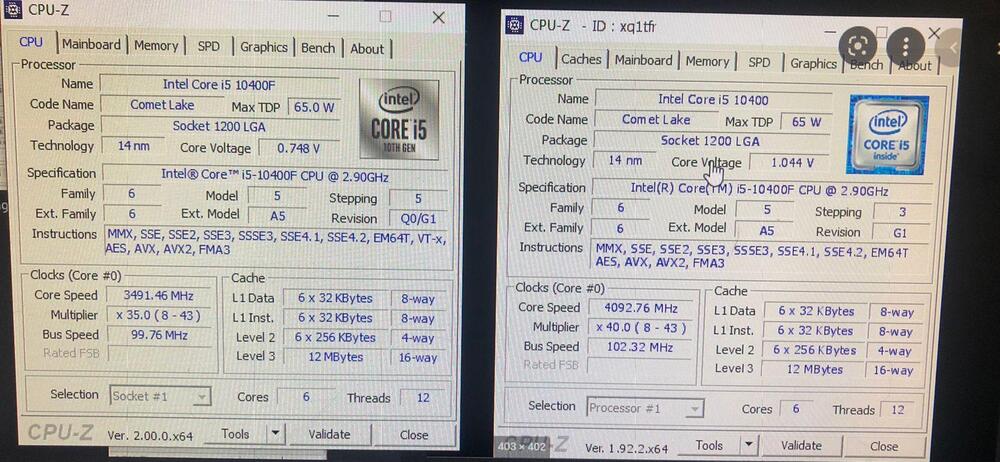 Olá boa tarde. Comprei um i5-10400F semana passada e notei algo peculiar: o meu core speed não passa dos 3.5ghz, mesmo quando em atividade ou jogos. O que eu notei de diferente no CPU-Z comparado às análises do Youtube é que o meu multiplier fica em 35.0, onde em vídeos e análises mostra 40.0 com a frequencia +- entre 4.0~4.3. Alguém teria alguma solução ou explicação? OBS: o 1° da imagem é o meu e o 2° uma imagem do google -