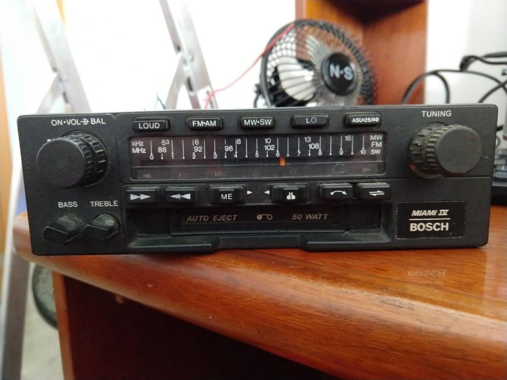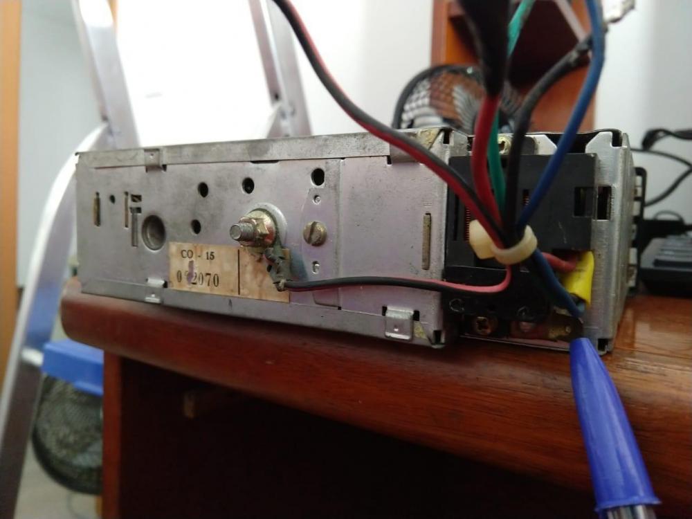 Um rapaz aqui na minha cidade estava vendendo um Bosch Miami IV e um Tojo GR180 por R$150,00, estavam parados a mais de 10 anos e não sabia se estava funcionando, arrematei! @BCP sabe o esquema de ligação deste rádio? Tentei testar mas não sei se fiz certo. Ele fez aquele ruído grave "boom" de quando liga e acendeu a luz "FM", mas não fez mais som nenhum, nem de estática. Fez apenas alguns ruídos inicialmente quando movimentei o knob do balance, mas depois parou. Conectei: O vermelho no positivo da bateria O vermelho com preto, que sai do parafuso da carcaça, no negativo da bateria O preto nos negativos das caixas O verde e o azul um pra cada positivo de cada caixa Algumas dúvidas: É melhor abrir outro tópico para isso? É assim que liga mesmo? Onde vai a antena? Ele tem uma espécie de conector em baixo na parte de trás, sabe pra que serve? (Apontado com a caneta) O que significa as posições das chaves nos comandos do toca fitas? Abraço! EDIT: Levei o aparelho e as caixas que tenho aqui pra testar no carro, não usei fonte de PC, usei a bateria do carro mesmo, 12v. -