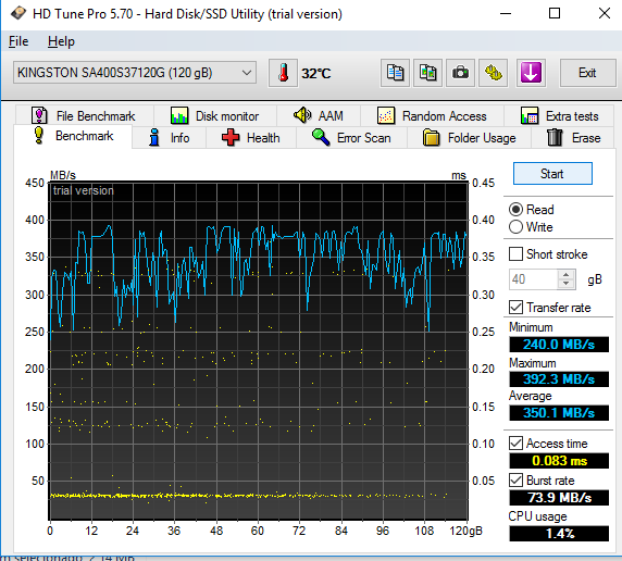 Meu ssd tava com um benchmark bem ruim pelo hd tune pro, eu restaurei o pc mas mantive os arquivos depois de ter tentado outros cabos satas e outras portas satas e nao ter resolvido, depois dessa restauração (reinstalação do windows por cima) parece ter dado uma boa melhorada...queria saber se agora esta normal, por favor. Agradeço Gtx 1060 6gb i7 7700 16gb ram ddr4 2300mhz Fonte 750w 80 plus gold, nao lembro a marca ssd kingston novo, com uns 2, 3 meses de uso 120gb 2 hds 7200rpm 1tb adicionado 8 minutos depois Assim fica com o modo de desempenho no windows no maximo, sem economizar energia