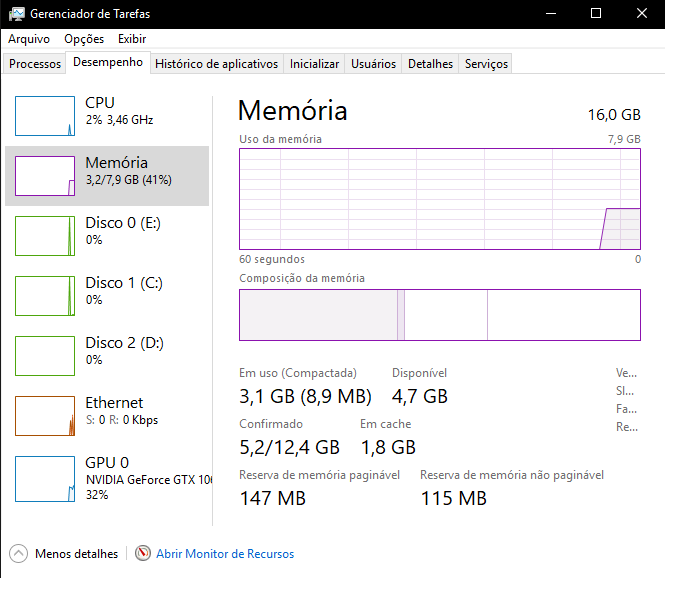 Bom dia galera, e o seguinte, acabei de comprar mais um pente de 8gb de RAM, totalizando 16GB, porém aparece que esta sendo utilizada apenas metade disto, o que pode ser ? Já alterei a ordem dos pentes, ouvi falar que pode ser pela BIOS esta desatualizada, mas eu passei por um problema recente de BIOS, onde teve que fazer a gravação da mesma depois de uma atualização mal sucedida, e o técnico me afirmou que gravou a ultima atualização, e eu não quero mexer com isso novamente, também li que pode ser o ONBOARD que esta puxando a memoria, mas não consegui achar isso na BIOS (mas la consta que tem 2 pentes, totalizando os 16) placa-mãe: AsRock AB350M-HDV BIOS P5.10