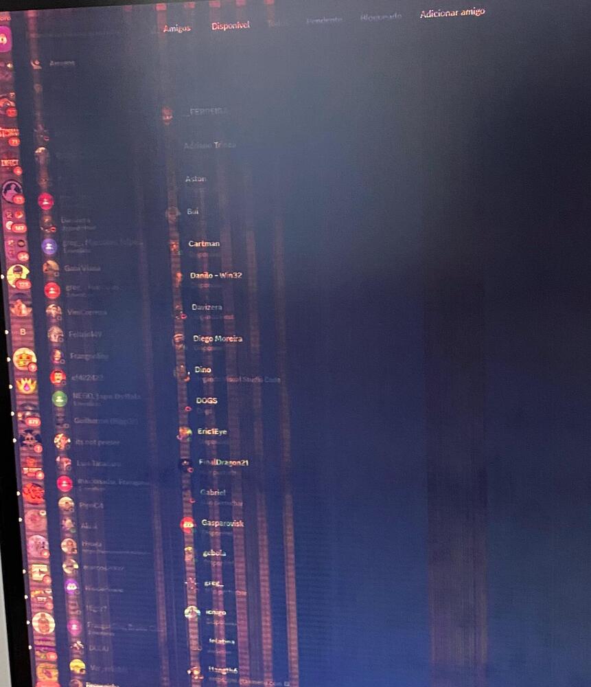 14. Opa Galera, tudo na paz? Então, recentemente adquiri um G9 de um cliente próximo e utilizando ele eu percebi que no Escape from Tarkov (Um game bem pesado) ele ficava “piscando” a tela quando eu abria o Launcher, e caso eu desligasse o monitor e ligasse ele “morria” como na imagem (só ajeitava desligando ele e ligando novamente). porém, dando uma pesquisada eu vi que ele era DP 1.4 e eu estava usando um DP 1.2 do meu outro monitor AOC Hero 27’ e quando fiz o teste utilizando o HDMI, ele não morreu e nem piscou quando abri o Launcher.. Sera que esse é o real problema? Vou ir atrás de um DP 1.4 OBS: Esse foi o ÚNICO problema que eu encontrei, só aconteceu isso no launcher desse game