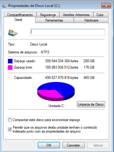 10. No gerenciamento de disco diz a mesma coisa, 176,91GB livres. O HD não é novo, ele é do meu primeiro computador, deve ter mais de 3 anos.. O Windows que eu utilizo é o Windows 7 Ultimate x64.