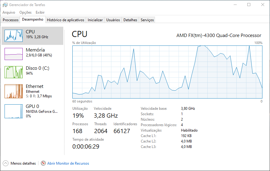 8. Boa noite, eu sou novo no fórum então desculpa se esse tópico estiver no lugar errado. Hoje eu formatei o meu pc, passando de um windows 7 x64 para um windows 10 pro x64, porém agora eu não consigo ativar mais do que 2 núcleos do processador, mesmo o pc reconhecendo que há 4 pelo msconfig (no windows 7 sempre ficavam os 4 ativos), já tentei os métodos de verificar alteração de hardware no gerenciador de dispositivos e não funcionou, se alguém souber o que pode ser me ajuda por favor processador amd fx 4300 placa-mãe gigabyte GA-78LMT-S2 Windows 10 pro x64