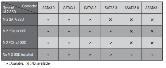 3. Opa amigo, tenho a mesma placa. Provavelmente você tá usando um NVMe PCIe x4 então as portas ASATA (aquelas 2 que ficam viradas "para frente") serão desabilitadas. Olha essa tabela que achei no manual disponível no site da Gigabyte: