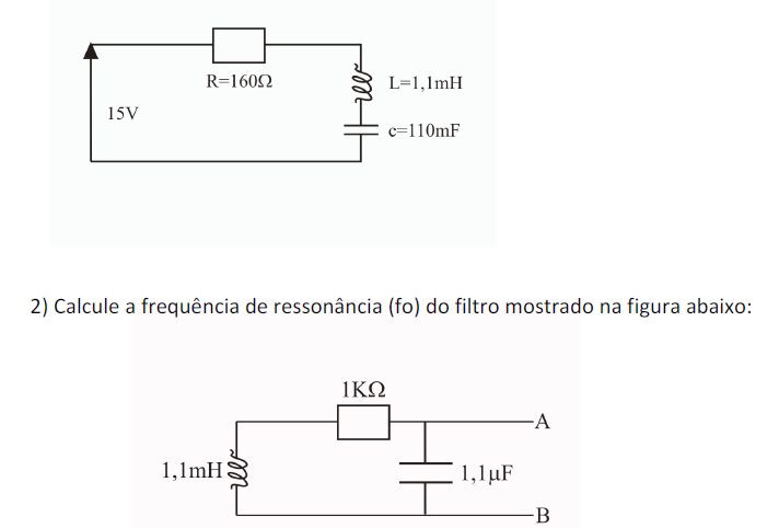 Boa tarde! Pessoal, estou com dúvidas em relação a resolução da atividade, estou utilizando a fórmula do circuito RLC, porém, não chego ao resultado correto. Anexei no tópico um trecho da minha apostila onde eu entendi que antes de encontrar a frequência, eu tenho que achar primeiro o resultado de Z. Poderiam ajudar? gostaria de saber qual a fórmula correta para começar a questão. Grato! Obs : estou me baseando nas fórmulas desse site do Newton Braga também, segue o link : http://www.newtoncbraga.com.br/index.php/matematica-para-eletronica/2163-m127.html