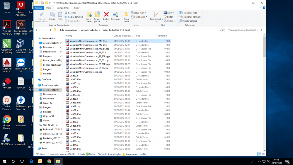 Tem vários arquivos nessa pasta. Tem arquivos com extensão .cpp, .dfm, .h, .res, .bpr, .ini e .exe (C Header File, C++ Source File, Arquivos Res, Delphi Form). O Compilador que foi usado eu realmente não sei.