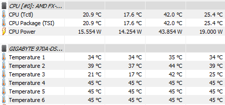 pois é kkkk to com dor de cabeça já agora que fui ver que não é o processador que olhei a temperatura, e sim da placa de vídeo (sou péssimo com computador, como você sabe) vou ter que até alterar o tópico no lol o MSI afterburner o GPU tava chegando a 64graus, sendo que antes chegava a 51 no máximo com o HWinfo tá assim a temperatura da CPU e da placa-mãe vou abrir um jogo aqui e testar qual a temperatura e já posto. também vou ver qual a marca do cooler do processador, que no momento só to com ele e 2 cooler 4x4 na placa-mãe pra ver se ela melhora a temperatura. adicionado 10 minutos depois durante o jogo, a temperatura ficou assim mas foi um teste rápido o cooler do processador é o xigmatex loki II -